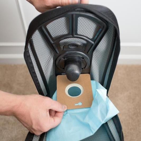 The R10E has a large bag that seals when installed and is very easy to change when full.